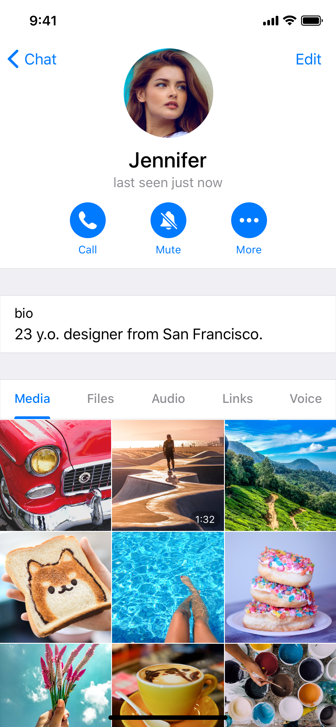 Shared media section, accessible from a contact's profile page